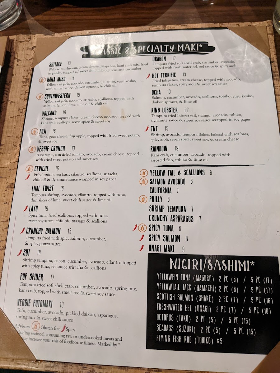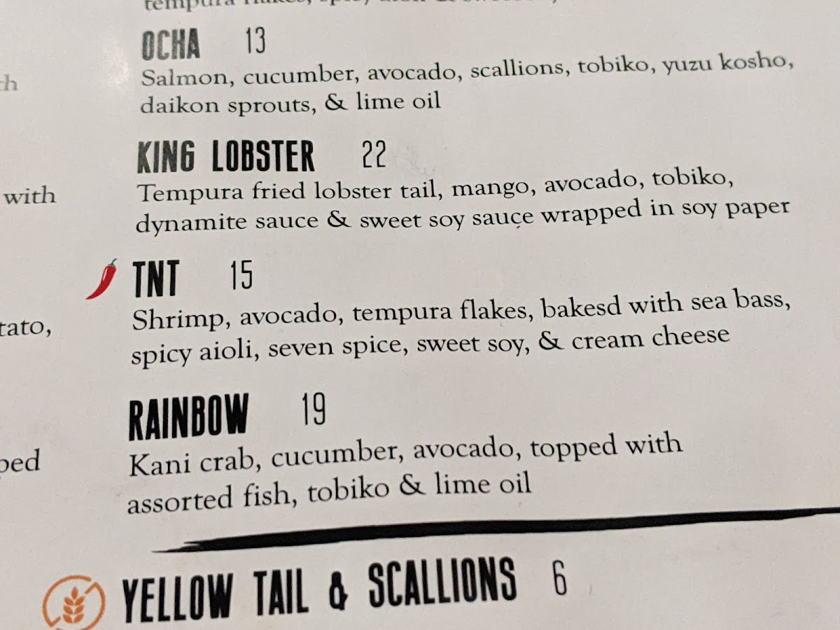 Tuna, avocado, siracha, scallions, spicy aioli & chili oil (Gluten Free)
